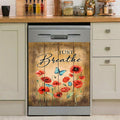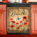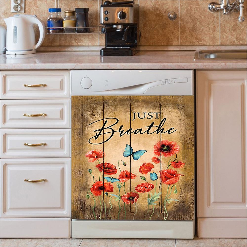 Just Breathe Pastel Flower Vase Yellow Butterfly Dishwasher Cover, Christian Dishwasher Wrap, Bible Verse Kitchen Decoration