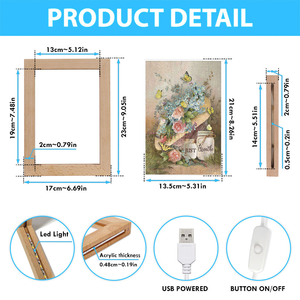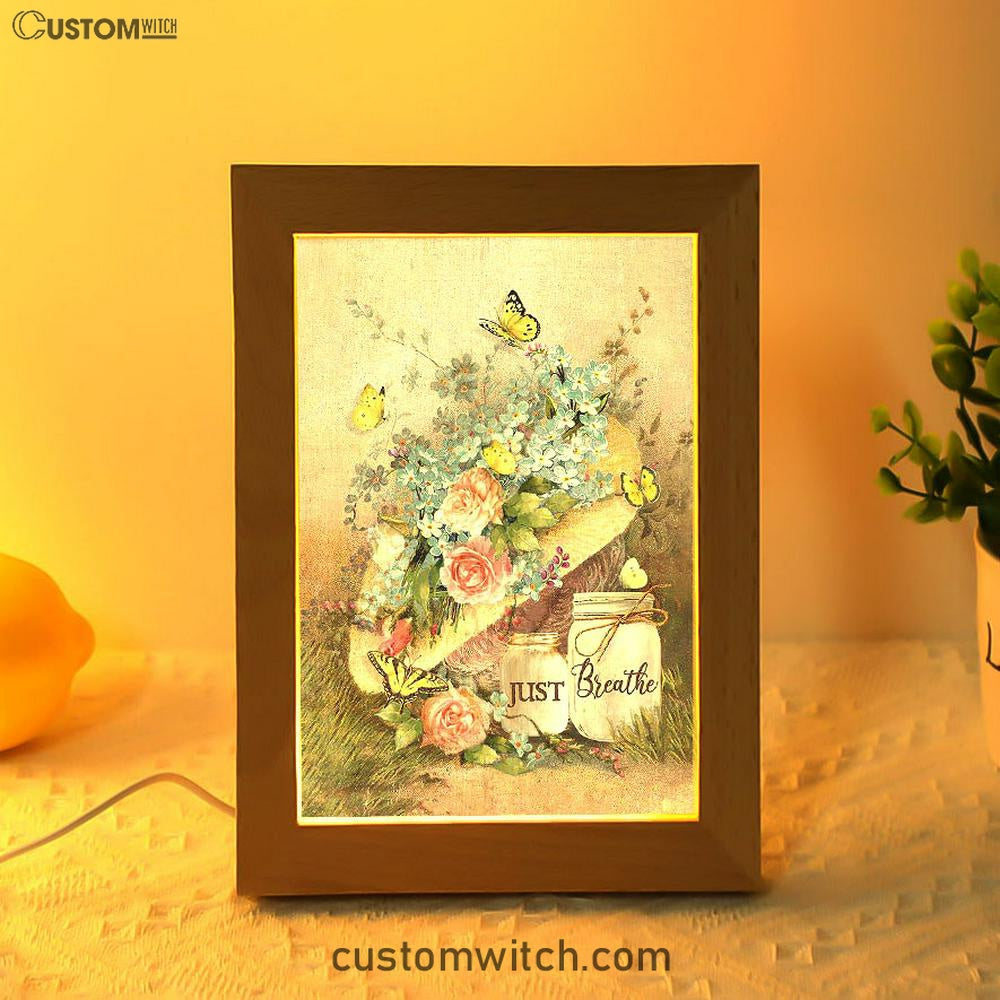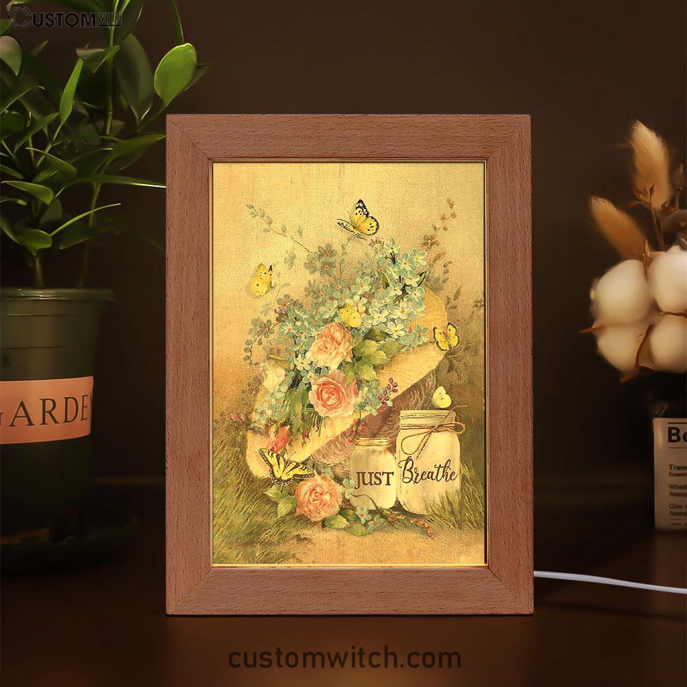 Just Breathe Pastel Flower Vase Yellow Butterfly Frame Lamp Art - Christian Art - Bible Verse Art - Religious Home Decor