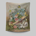 Just Breathe Pastel Flower Vase Yellow Butterfly Tapestry Art - Christian Art - Bible Verse Wall Art - Religious Home Decor