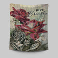 Just Breathe Red Rose Butterfly Tapestry Wall Art - Bible Verse Tapestry Art - Inspirational Art - Christian Indoor Wall Tapestries