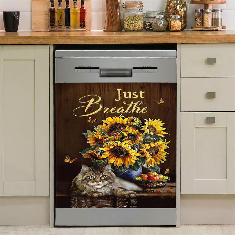 Just Breathe Rose Vase Tea Pot Dishwasher Cover, Bible Verse Dishwasher Wrap, Christian Kitchen Decoration
