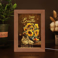 Just Breathe Sunflower Cat Art Frame Lamp - Bible Verse Wooden Lamp - Christian Art Home Decor