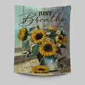 Just Breathe Sunflower Vase Hummingbird Tapestry Art - Christian Art - Bible Verse Wall Art - Religious Home Decor