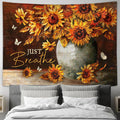 Just Breathe Sunflower White Butterfly Tapestry Art - Christian Wall Art Decor - Bible Verse Tapestry
