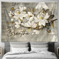 Just Breathe White Flower Monarch Butterfly Tapestry Art - Bible Verse Wall Art - Wall Decor Christian