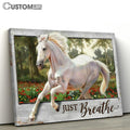 Just Breathe White Horse Running In The Wood Canvas Prints - Christian Wall Art - Religious Home Decor