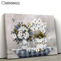 Just Breathe White Orchid Butterfly Canvas Art - Bible Verse Wall Art - Wall Decor Christian