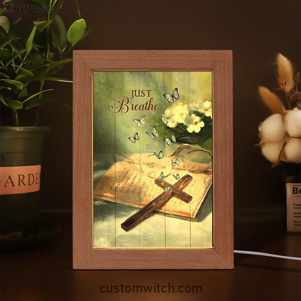 Just Breathe Wooden Cross Bible Frame Lamp - Christian Art - Religious Home Decor