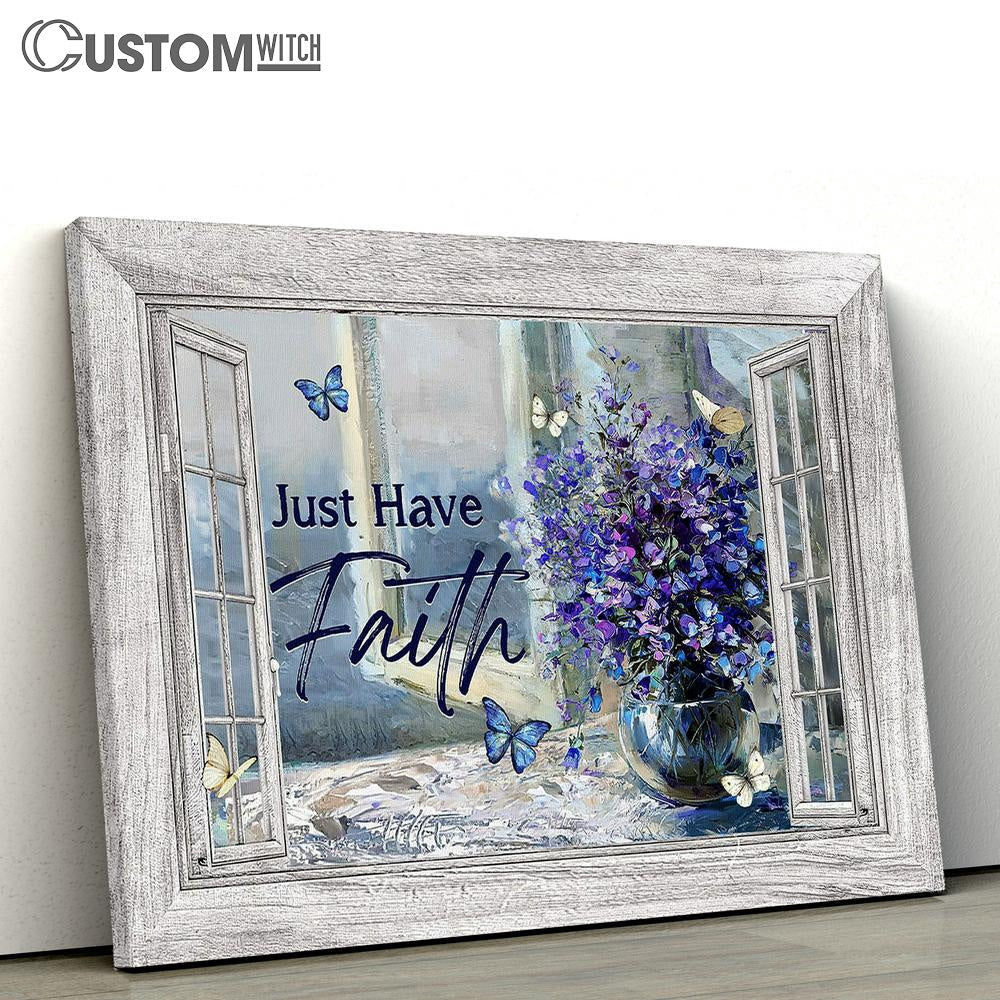 Just Have Faith Balloon Flower Crystal Vase Blue Butterfly Canvas Wall Art - Bible Verse Canvas - Religious Prints