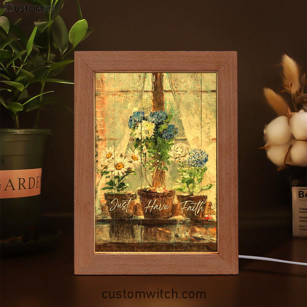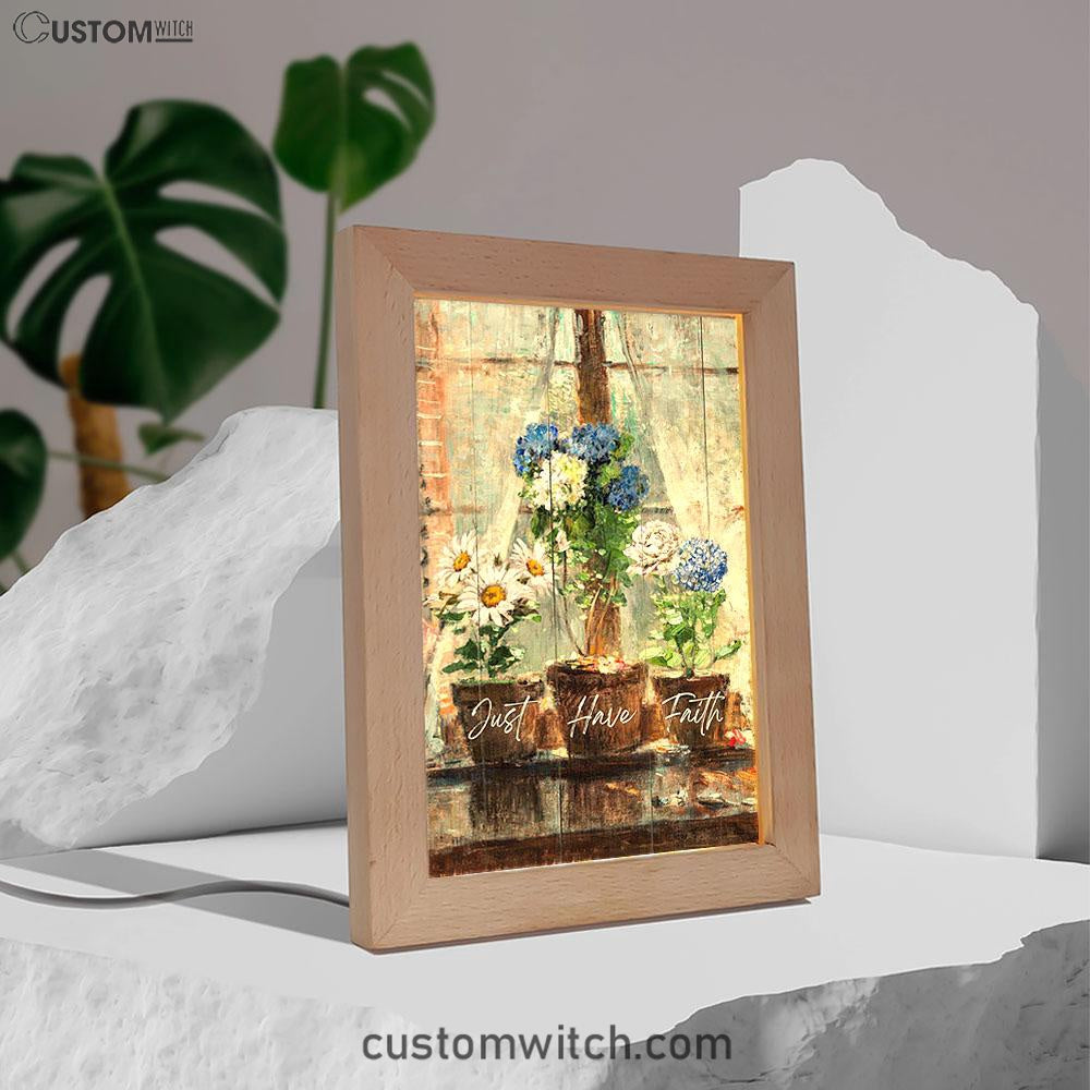 Just Have Faith Blue Hydrangea White Daisy Frame Lamp Art - Bible Verse Wooden Lamp - Inspirational Art - Christian Home Decor