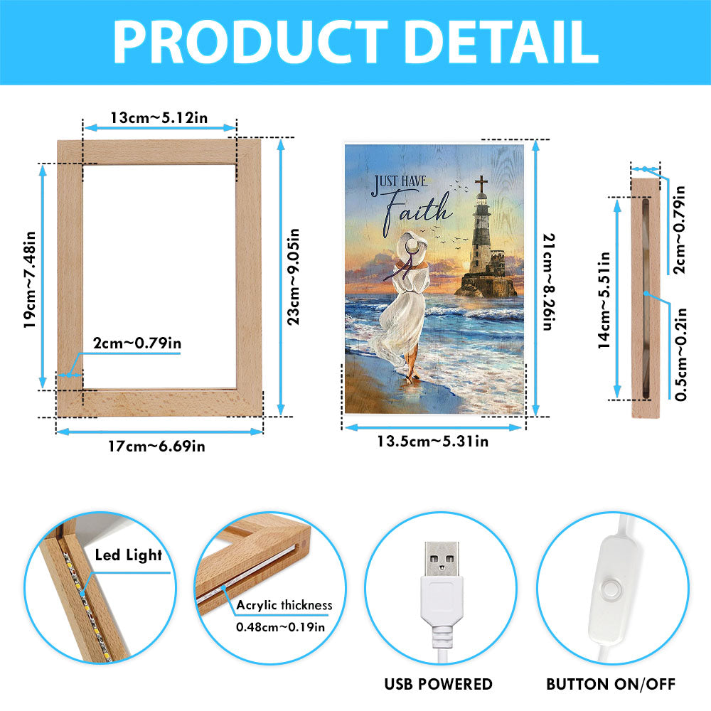 Just Have Faith Ocean Lighthouse Frame Lamp Art - Christian Night Light - Bible Verse Wooden Lamp