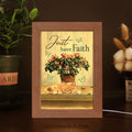Just Have Faith Pink Flower Sleeping Cat Art Frame Lamp - Bible Verse Wooden Lamp - Christian Art Home Decor
