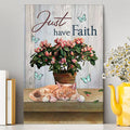 Just Have Faith Pink Flower Sleeping Cat Wall Art Canvas - Bible Verse Canvas Art - Christian Wall Art Home Decor
