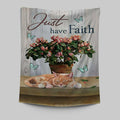 Just Have Faith Pink Flower Sleeping Cat Wall Art Tapestry - Bible Verse Tapestry Art - Christian Wall Art Home Decor