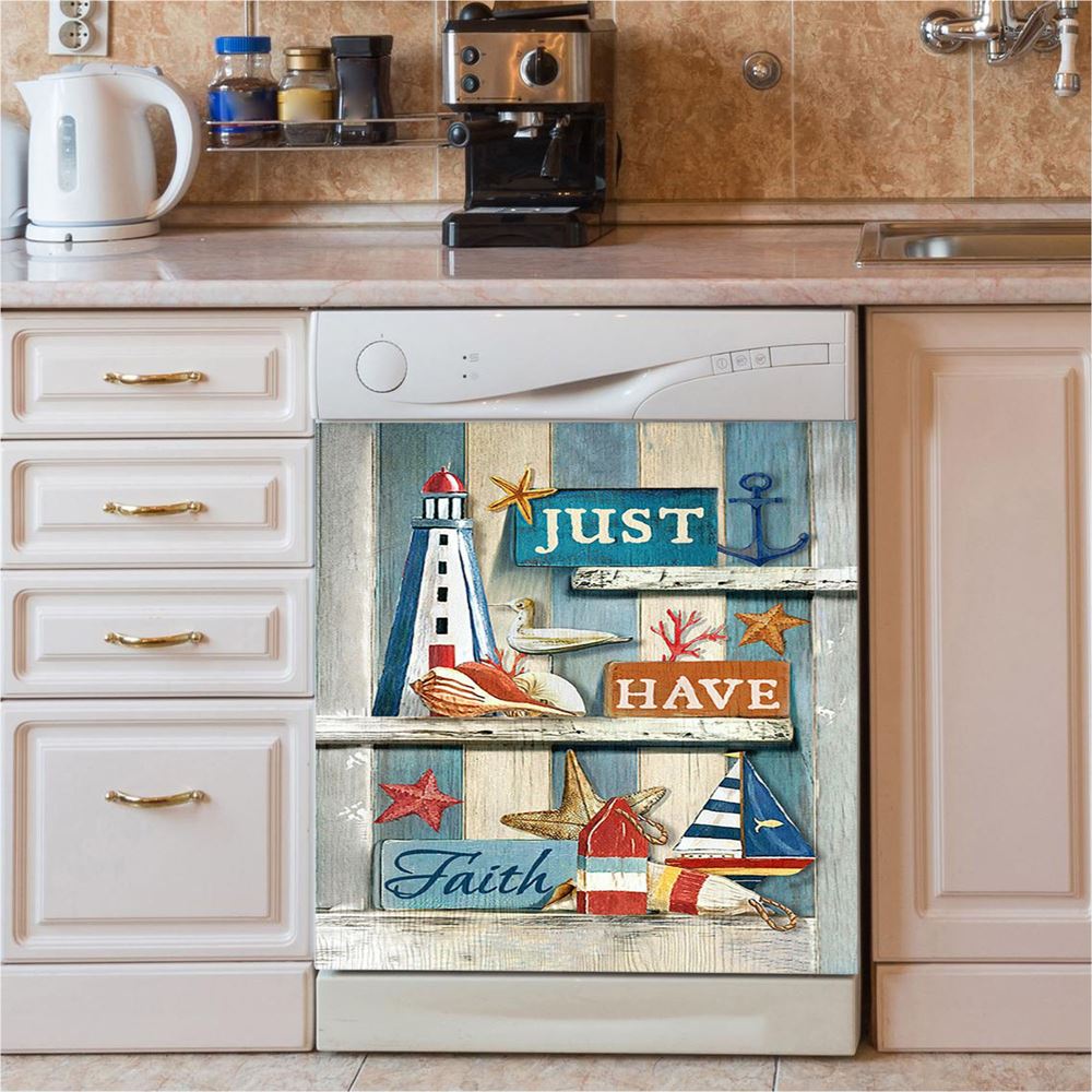 Just Have Faith Pretty Lighthouse Ocean Dishwasher Cover, Bible Verse Dishwasher Wrap, Christian Kitchen Decoration