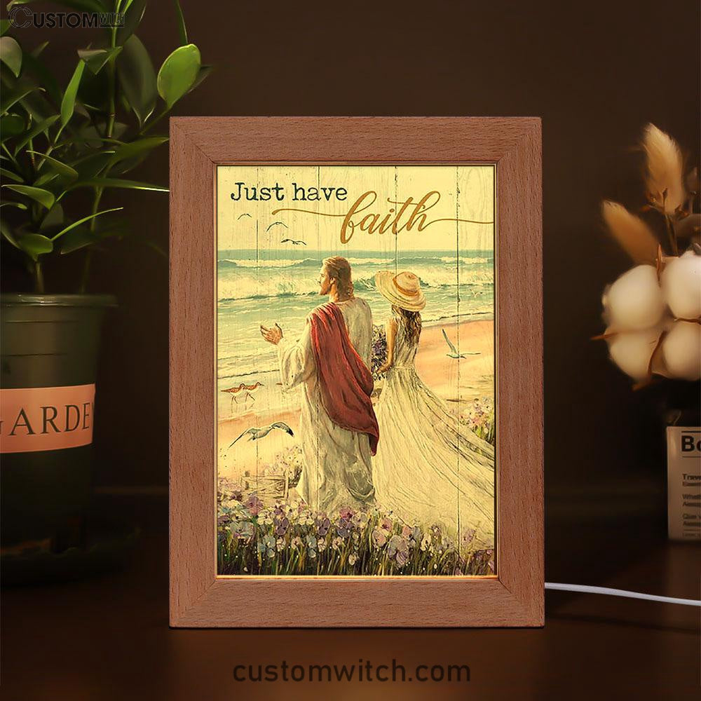 Just Have Faith Walk With Jesus Blue Ocean Frame Lamp Art - Christian Night Light - Bible Verse Wooden Lamp