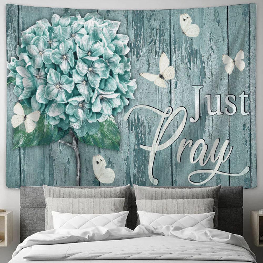 Just Pray White Butterfly Hydrangea Large Tapestry - Christian Tapestry Prints - Religious Tapestry Art