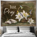 Just Pray White Lily Bible Hummingbirds Tapestry Art - Bible Verse Wall Art - Wall Decor Christian
