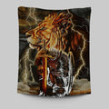 Knight Kneel In Front Of Lion Jesus Christ Warrior Tapestry Wall Art - Christian Indoor Wall Tapestries - Religious Art