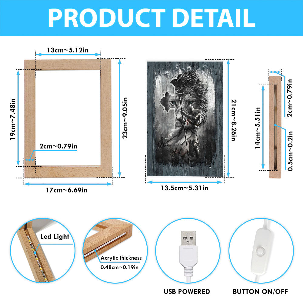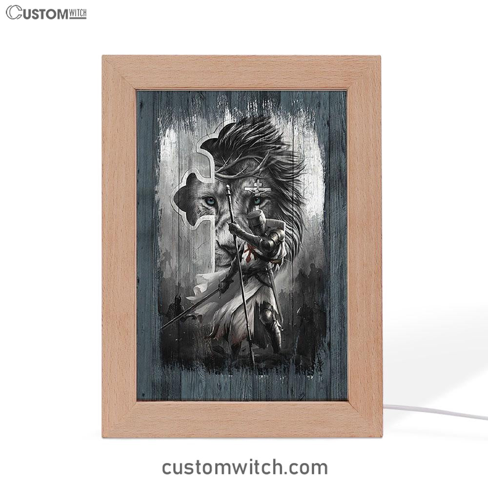 Knight Lion Of Judah And The Cross Frame Lamp - Lion Frame Lamp Print - Christian Art - Religious Home Decor