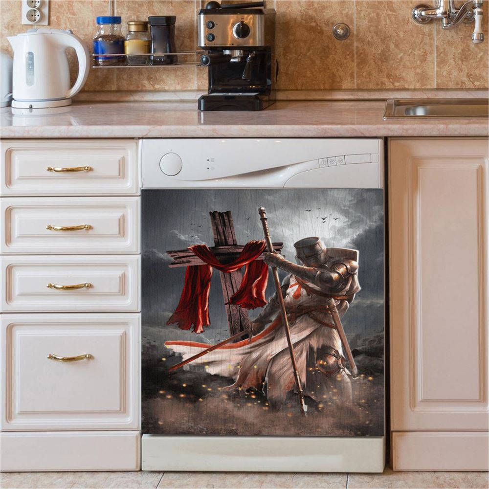 Knight Templar And Cross Jesus Dishwasher Cover, Jesus Christ Dishwasher Wrap, Christian Kitchen Decoration