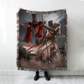 Knight Templar And Cross Jesus Woven Blanket Prints - Jesus Christ Woven Blanket Art - Christian Boho Blanket