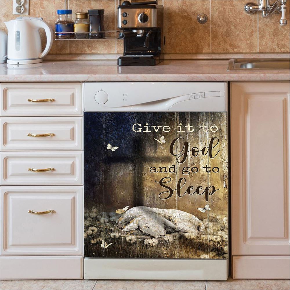Lamb Of God Dandelion Field Give It To God And Go To Sleep Dishwasher Cover, Christian Dishwasher Wrap, Bible Verse Kitchen Decoration