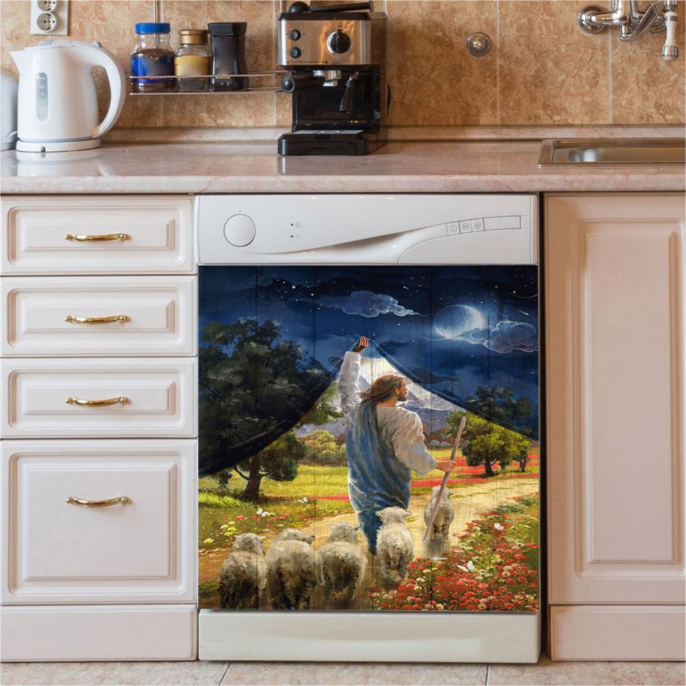 Lamb Of God Flower Field Jesus The Good Shepherd Dishwasher Cover, Lion Dishwasher Wrap, Christian Kitchen Decoration
