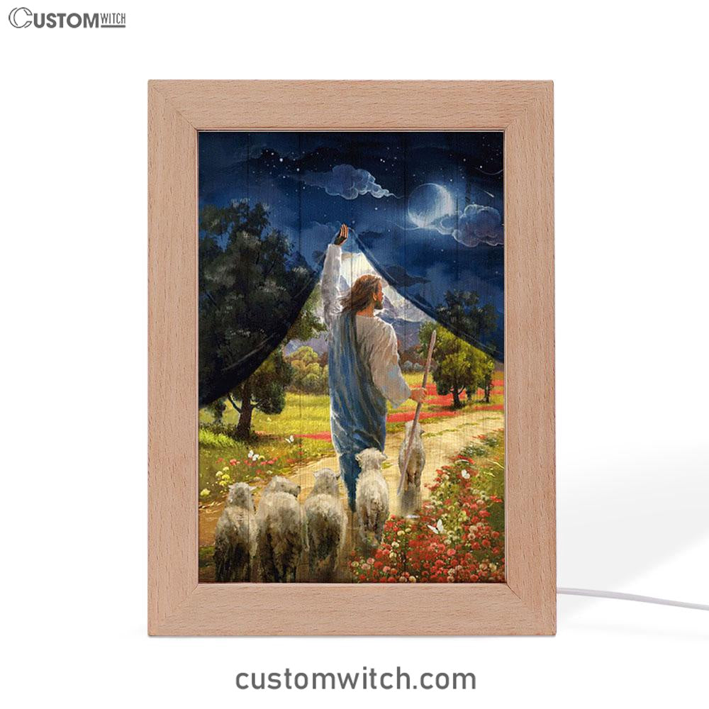 Lamb Of God Flower Field Jesus The Good Shepherd Frame Lamp - Lion Frame Lamp Print - Christian Art - Religious Home Decor