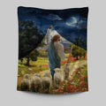 Lamb Of God Flower Field Jesus The Good Shepherd Tapestry - Lion Tapestry Print - Christian Wall Art - Religious Home Decor