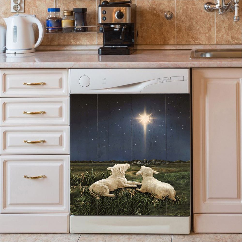Lambs Look At The Light Star Of Bethlehem Dishwasher Cover, Lion Dishwasher Wrap, Christian Kitchen Decoration