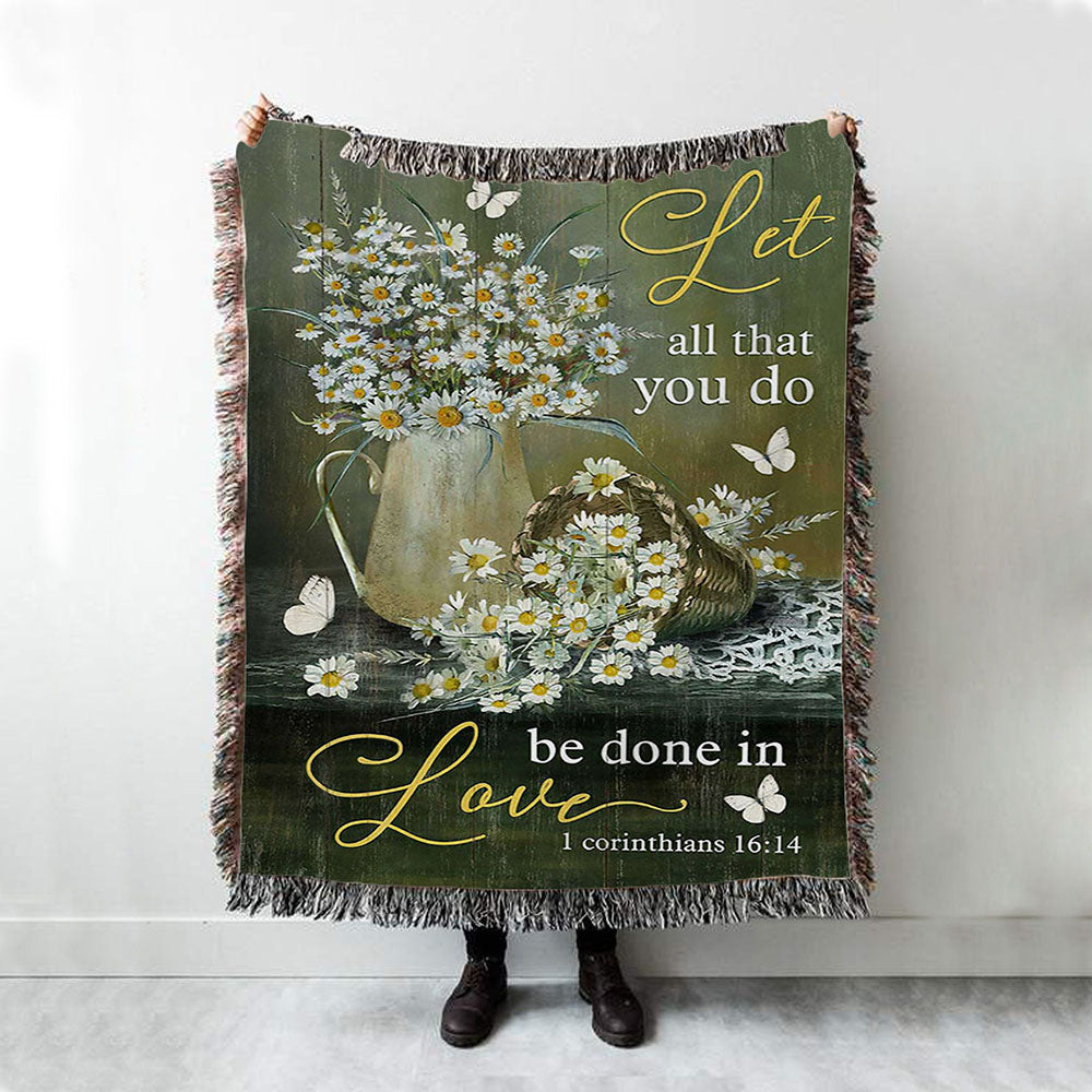 Let All That You Do Be Done In Love Daisy Flower Butterfly Woven Blanket Art - Christian Art - Bible Verse Throw Blanket - Religious Home Decor