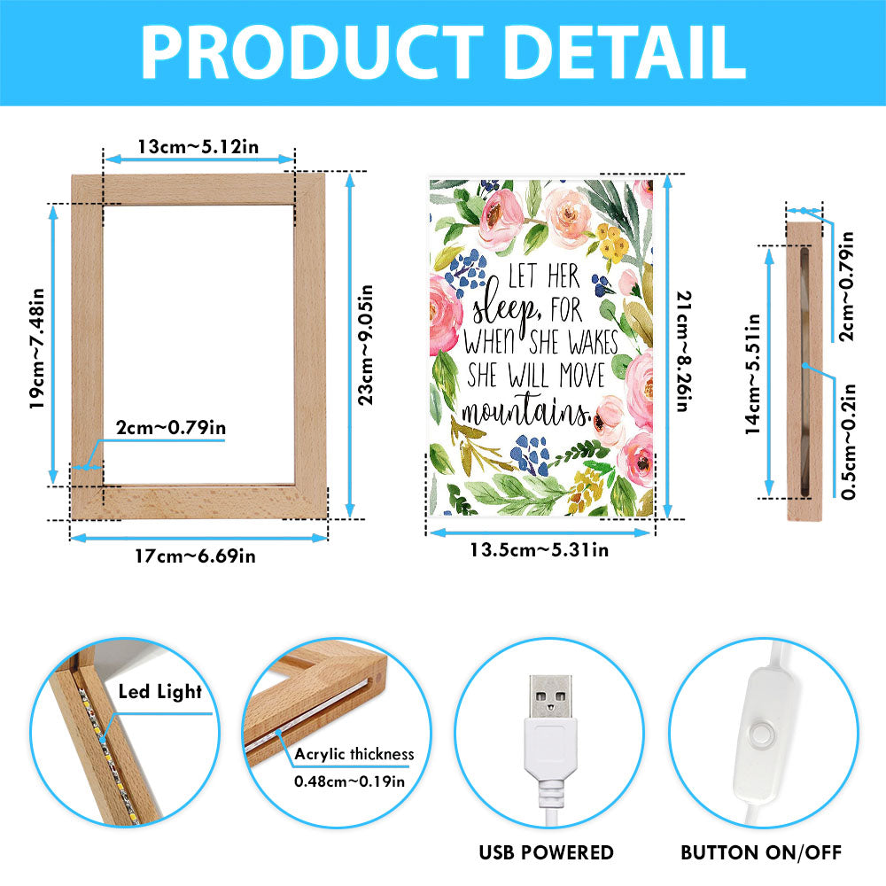 Let Her Sleep For When She Wakes She Will Move Mountains Frame Lamp Art - Christian Night Light Decor