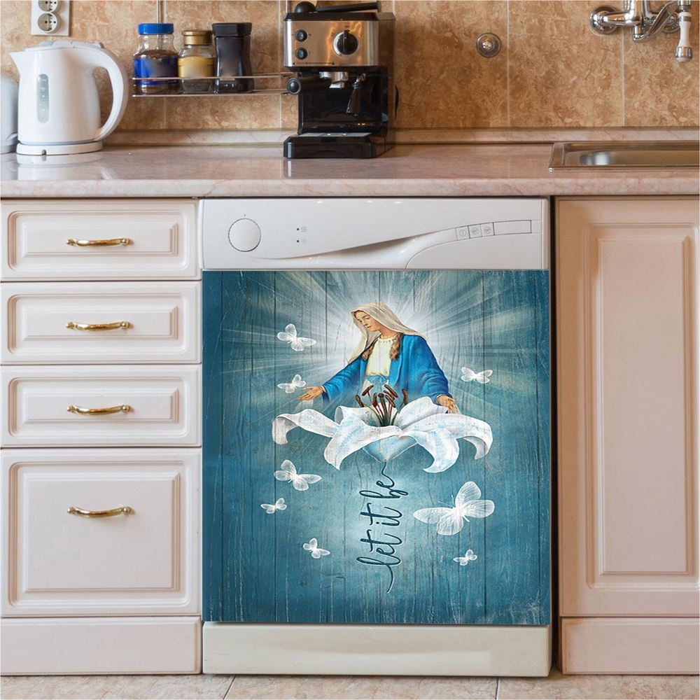 Let It Be Lily Flower Maria Butterfly Dishwasher Cover, Lion Dishwasher Wrap, Christian Kitchen Decoration