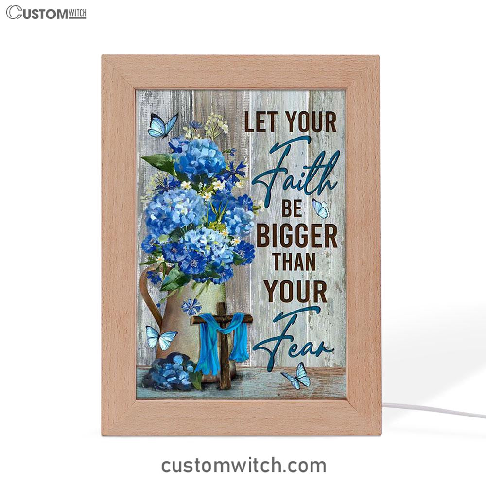 Let Your Faith Be Bigger Than Your Fear Flower Blue Butterfly Frame Lamp - Lion Frame Lamp Print - Christian Art - Religious Home Decor