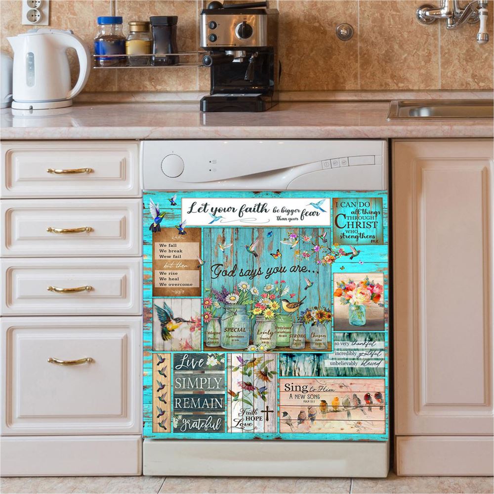 Let Your Faith Be Bigger Than Your Fear Humming Bird Dishwasher Cover, Christian Dishwasher Wrap, Religious Kitchen Decoration