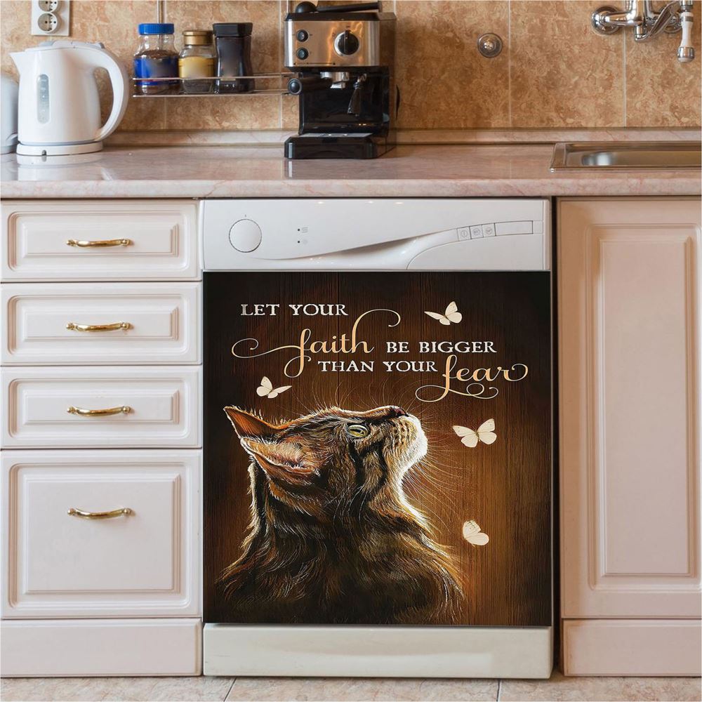Let Your Faith Tabby Cat White Butterfly Dishwasher Cover, Christian Dishwasher Wrap, Gift For Cat Lover