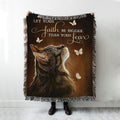 Let Your Faith Tabby Cat White Butterfly Woven Blanket Art - Christian Throw Blanket Decor - Gift For Cat Lover