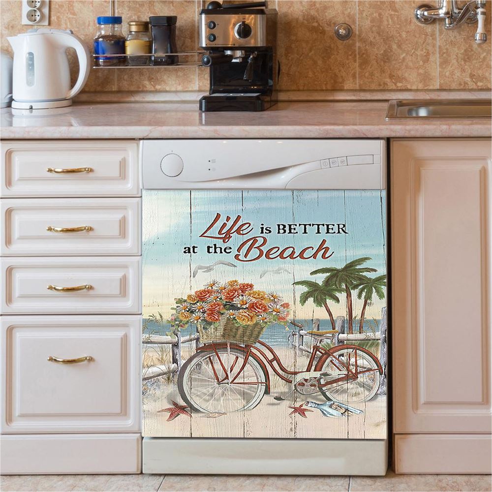 Life Is Better At The Beach Flower Basket Beach Cruiser Dishwasher Cover, Christian Dishwasher Wrap, Religious Kitchen Decoration