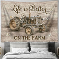 Life Is Better On The Farm Tractor White Butterfly Tapestry Art - Bible Verse Wall Art - Wall Decor Christian