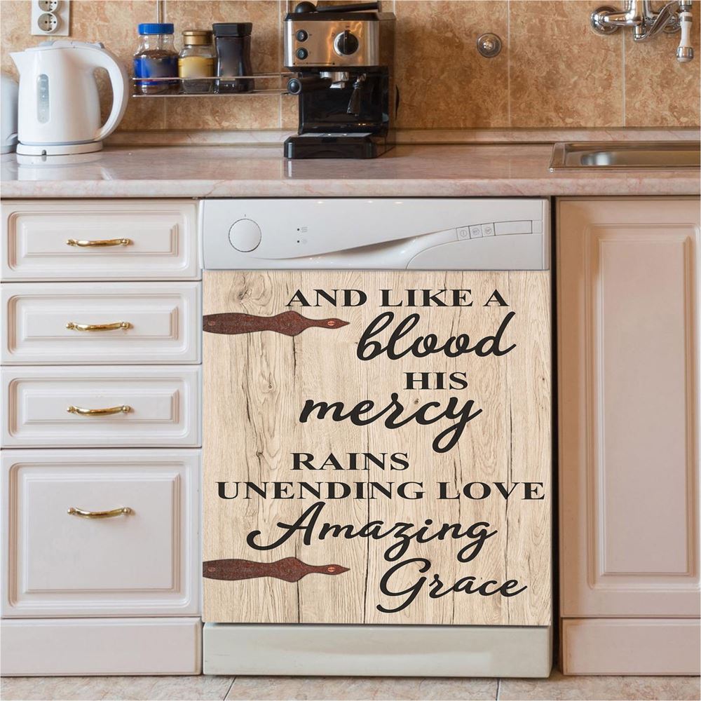 Like A Blood His Mercy Rains Unendling Love Dishwasher Cover, Christian Dishwasher Wrap, Religious Kitchen Decoration