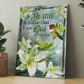 Lily Flowers Hummingbird Be Still And Know That I Am God Canvas, Christmas Gift for Christian