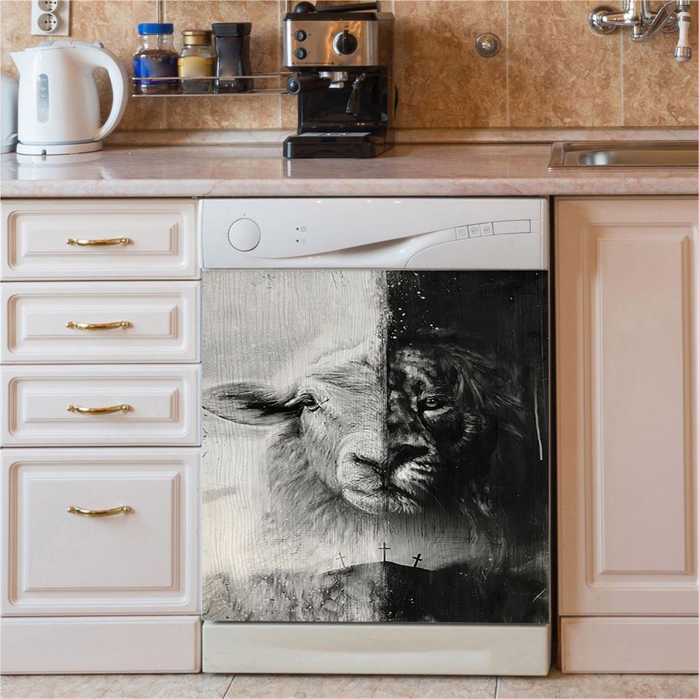 Lion And Lamb Face Dishwasher Cover, Lion Dishwasher Wrap, Christian Kitchen Decoration