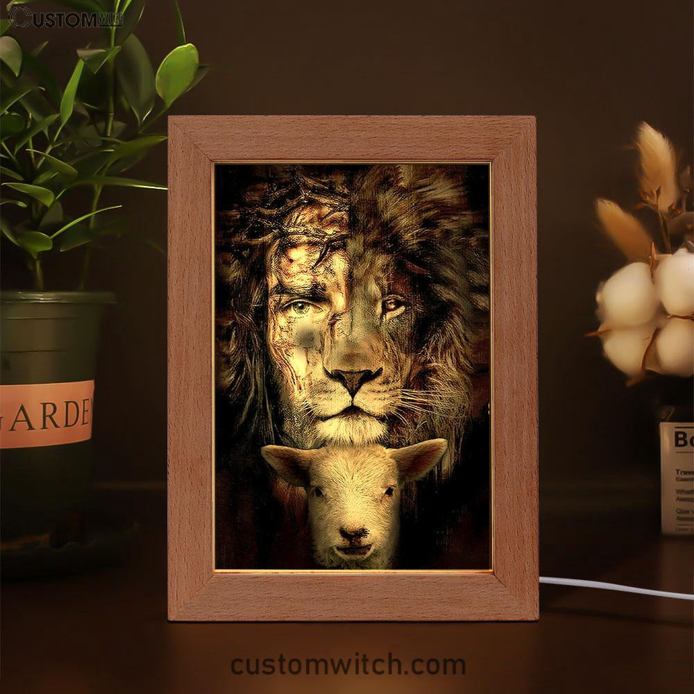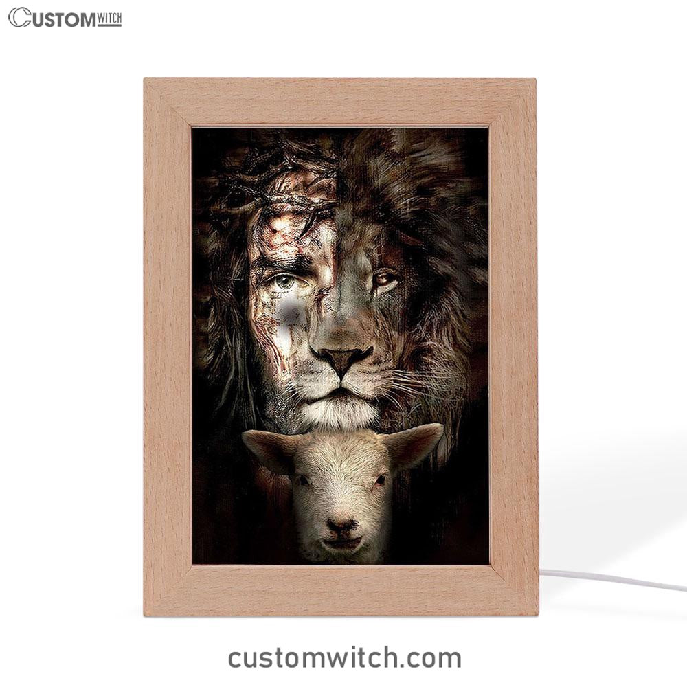 Lion And Lamb Frame Lamp Art - Christian Frame Lamp - Religious Gifts Night Light