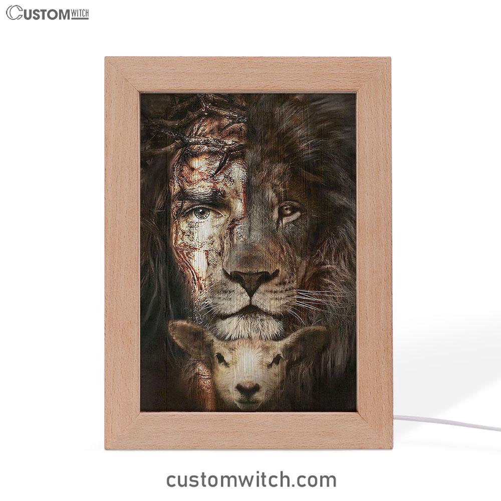 Lion And Lamb Frame Lamp Art Prints - Christian Frame Lamp - Religious Gifts Night Light