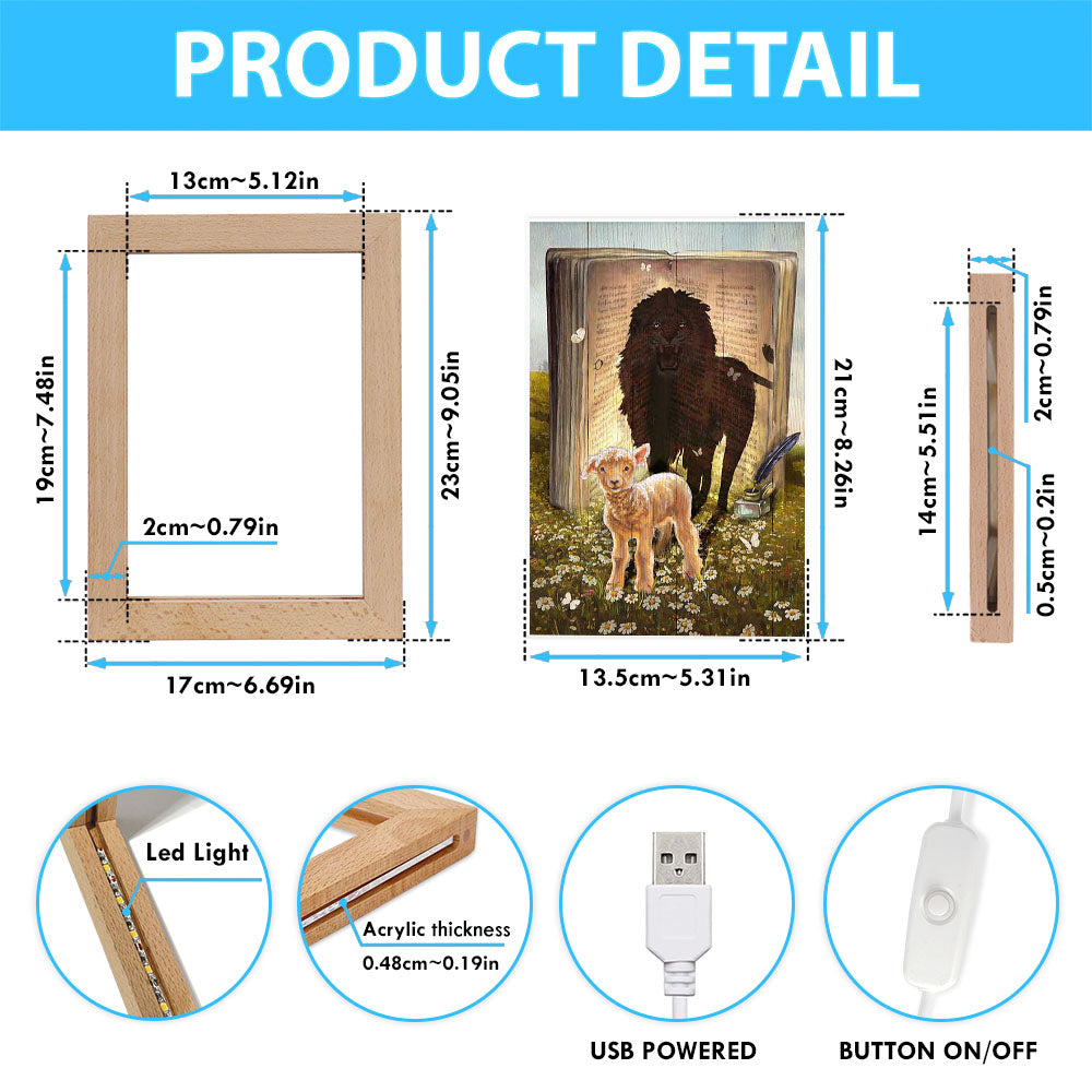 Lion And Lamb Of God Daisy Field White Butterfly Frame Lamp - Lion Frame Lamp Print - Christian Art - Religious Home Decor