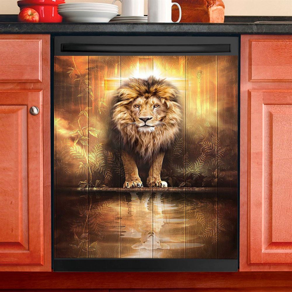 Lion And Lamb Water Reflection Jesus Dishwasher Cover, Jesus Dishwasher Wrap, Christian Kitchen Decoration