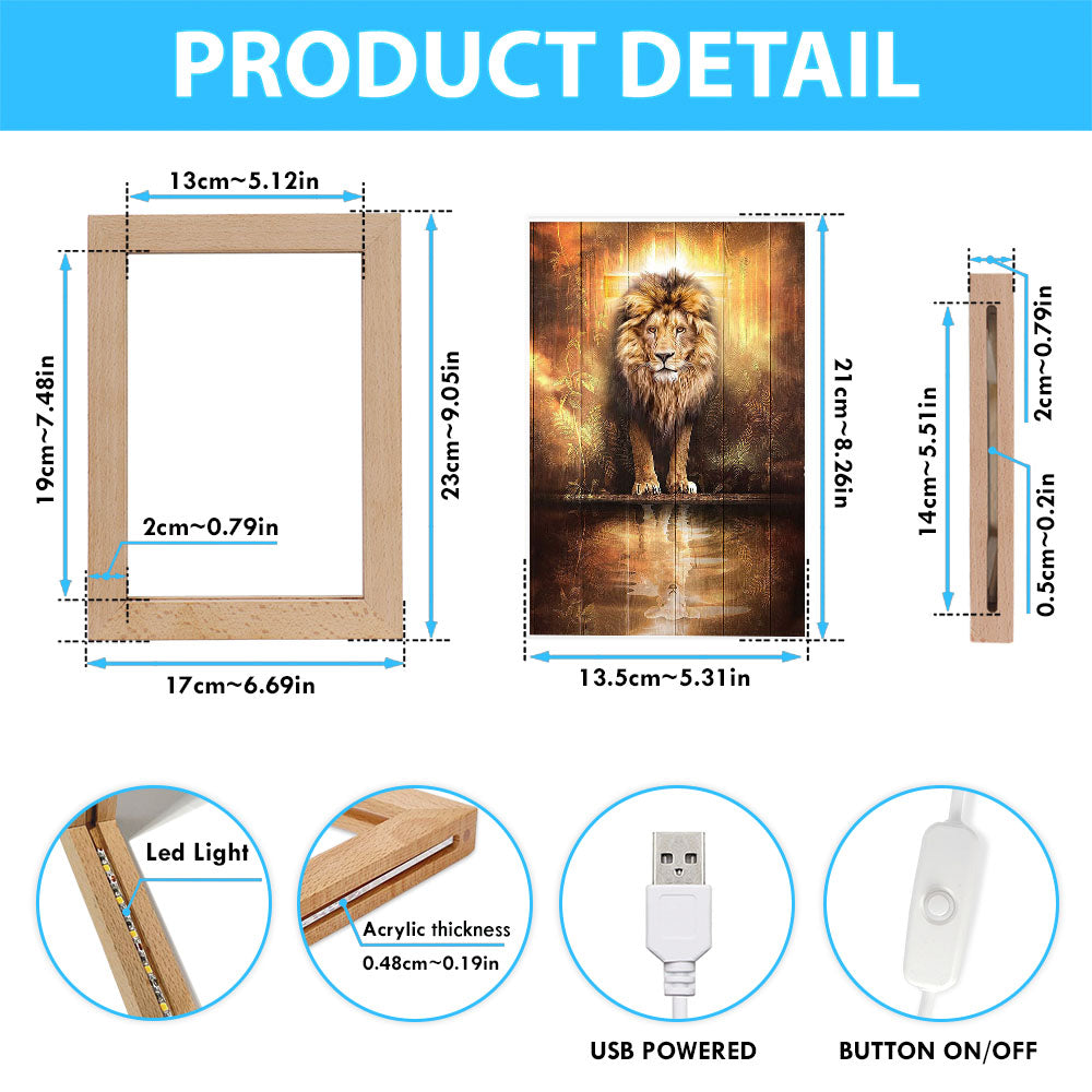 Lion And Lamb Water Reflection Jesus Frame Lamp Art - Jesus Frame Lamp Pictures - Christian Night Light