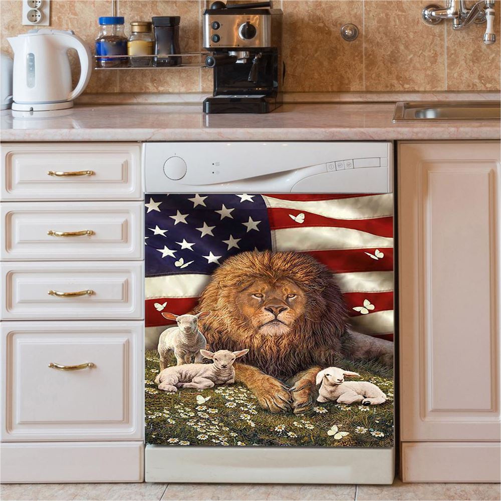 Lion And The Lamb Daisy Garden Dishwasher Cover, Lion Dishwasher Wrap, Christian Kitchen Decoration