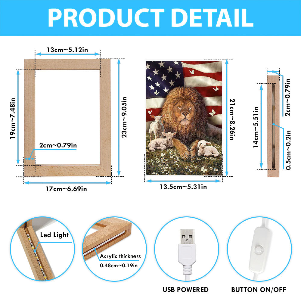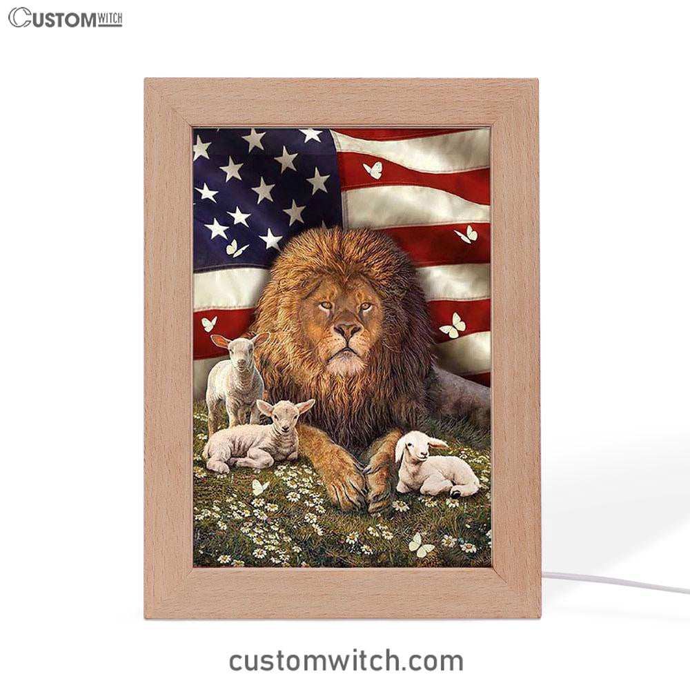 Lion And The Lamb Daisy Garden Frame Lamp - Lion Frame Lamp Print - Christian Art - Religious Home Decor